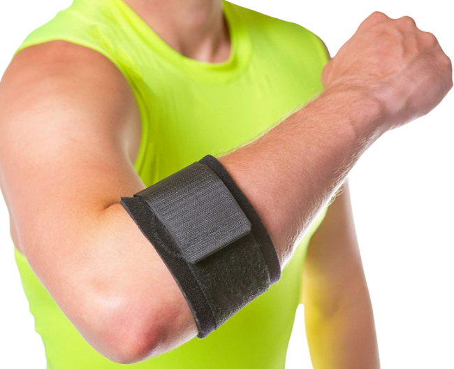 테니스 엘보는 보호대를 착용하여 예방하는데 도움을 주거나 증상을 완화할 수 있습니다. 단 만성적인 테니스 엘보보다는 급성적인 증상에만 효과가 있을 수 있습니다. 테니스 엘보는 손목을 위로 올릴 때 사용하는 힘줄에 염증이 생긴 것이기 때문에 이 부분을 잡아주는 보호대를 사용해야 효과가 있습니다. 한 연구 논문에 따르면, 테니스 엘보에 가장 효과가 있는 보호대는 손목을 고정시켜주는 손목 보호대이며, 그 다음으로 효과가 있는 것이 전완근을 잡아주는 보호대라고 합니다. 테니스 엘보로 통증을 느끼시는 분들 중에 팔꿈치 관절 보호대를 사용하시는 분들이 많은데, 팔꿈치를 굽혔다 폈다하는 동작은 이두근과 삼두근의 수축에 의한 것이기 때문에 테니스 엘보에는 거의 효과가 없습니다.